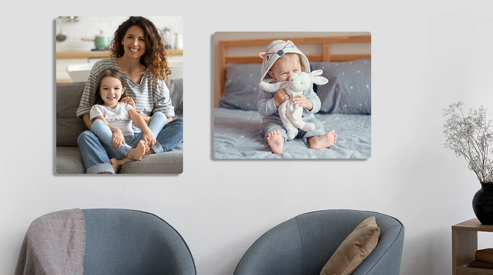 Make a bold statement with sleek metal photo panels. The vibrant colors and modern metallic finish create stunning contemporary wall art that stands out in any space.