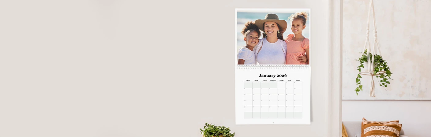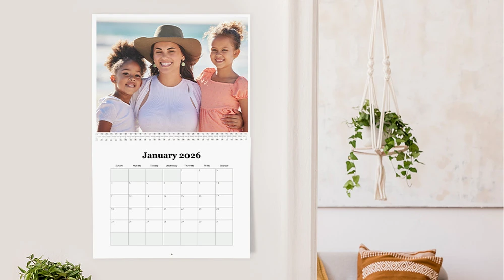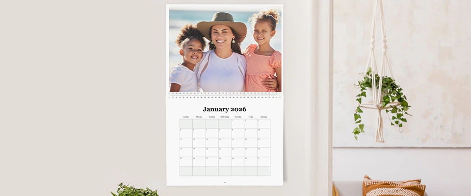 Gift a year of memories with our personalized 12-month spiral-bound wall calendars. Measuring 8.5" x 11" and printed on premium paper, these calendars let you showcase your favorite photos all year long. Order through Verizon for same-day pickup at Walgreens.