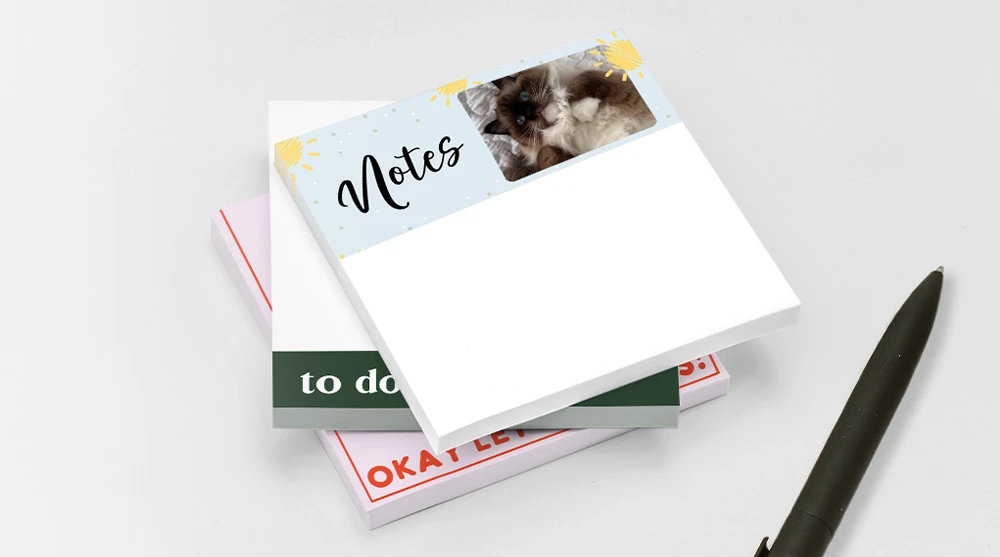 Keep your notes organized in style with custom 5.5"x 6" photo notepads. Add your own images or logo for a personalized touch. Perfect for home, office, or as thoughtful gifts.